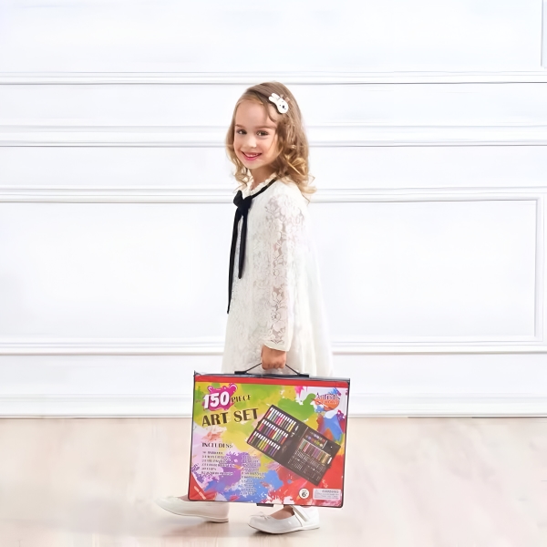 Acesta este mai mult decât un penar. Sunt 150 de piese de creativitate pură. De la schițare la pictură, la lipici și foarfece — totul este inclus.
