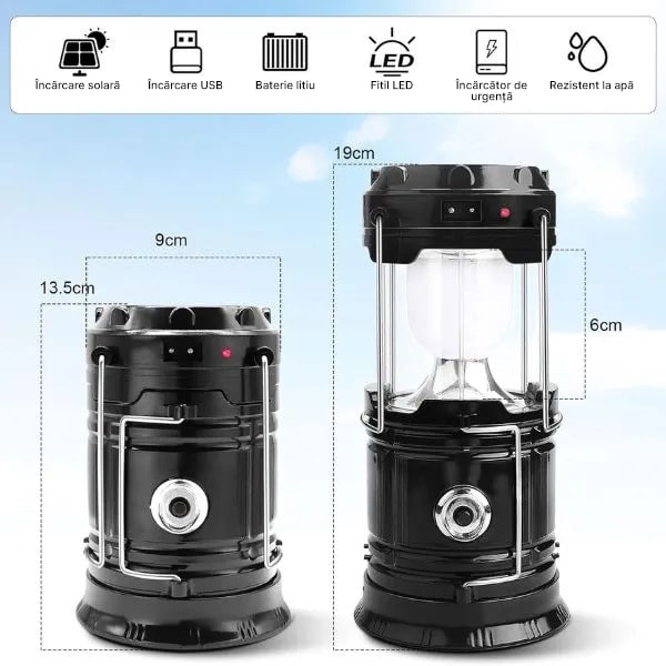 Lampă de camping cu încărcare solară + lanternă de mână | CAMPGLO