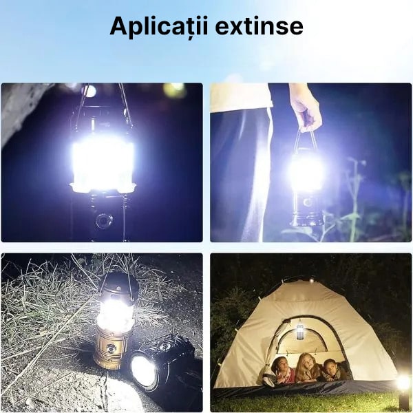 Această uimitoare lampă+lanternă este potrivită pentru o gamă largă de activități. Folosiți-o în timp ce pescuiți, faceți drumeții, vânați sau pur și simplu vă relaxați în grădină. Mânerul robust al lămpii vă permite să o atârnați oriunde, oferind iluminare fără mâini. Designul său compact și ușor asigură că este ușor de transportat și depozitat, ceea ce o face perfectă pentru toate aventurile tale în aer liber și în interior.