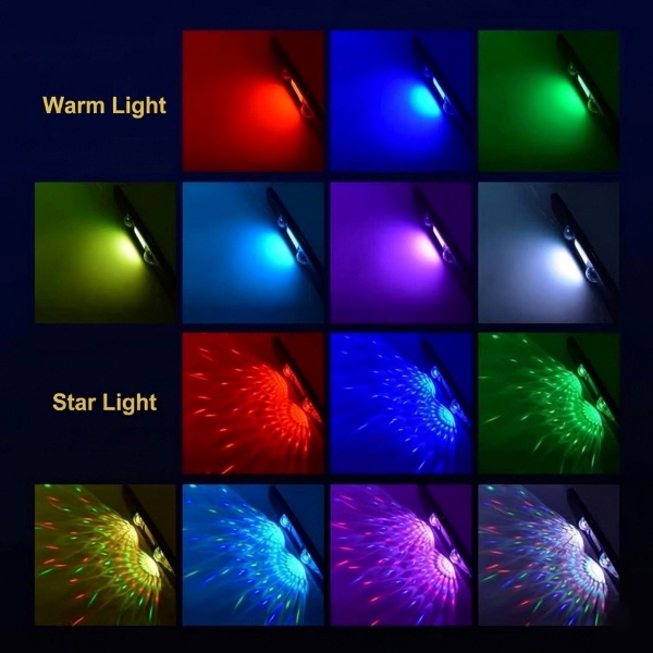 Moduri de iluminare: alb cald, cald + ciclu multicolor, stele + control sunet, stele statice, stroboscop audio de intensitate mare
