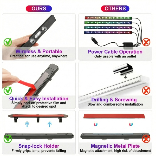 Fără cabluri, fără instalare – baterie reîncărcabilă USB de 300 mAh, montaj magnetic în câteva secunde