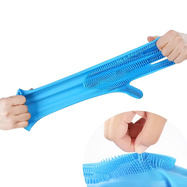 Partea extinsă a încheieturii previne căderea mănușilor în timpul utilizării, protejându-vă mânecile de murdărie și mâinile de zgârieturi de la animalele mici. Designul cu cinci degete vă permite să curățați fiecare colț al animalului dumneavoastră.