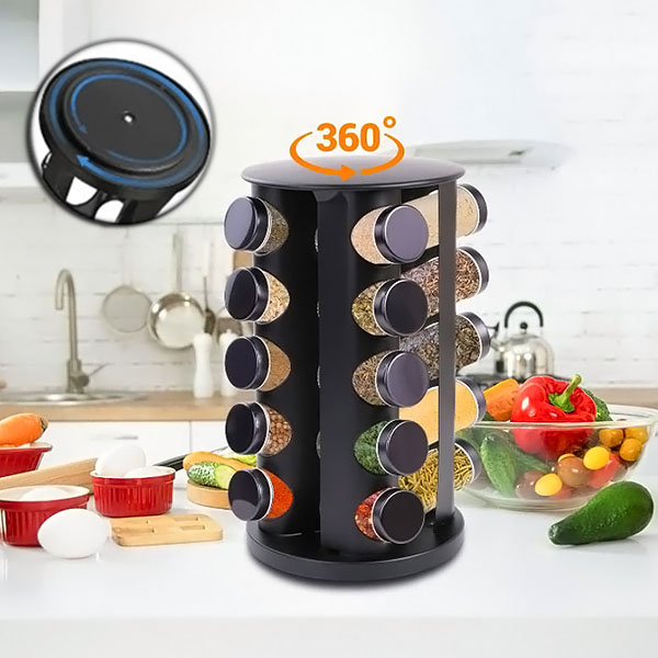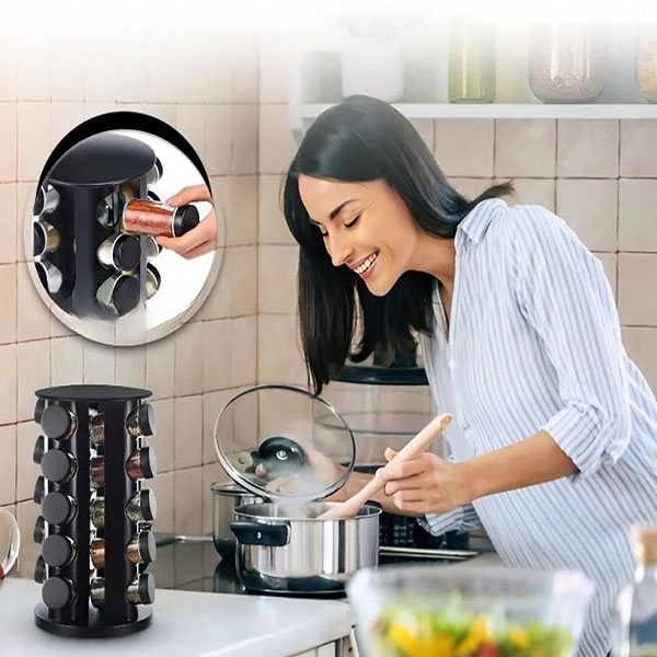 Acest suport rotativ pentru condimente aduce atât funcționalitate, cât și stil oricărei configurații de bucătărie.