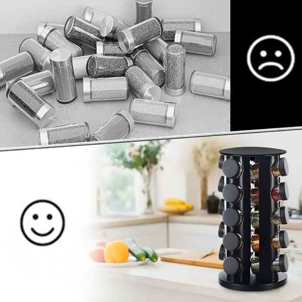 Păstrați condimentele ordonat organizate și ușor de găsit, economisind spațiu și timp prețios atunci când gătiți.