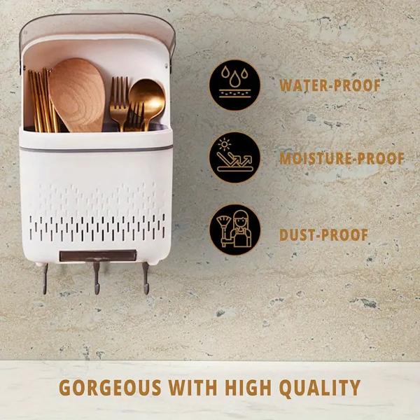🧹 Design rezistent la praf cu un capac pentru a păstra ustensilele curate.