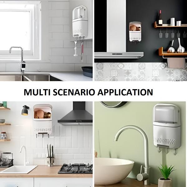 🌿 Ideal pentru depozitarea uneltelor mici de bucătărie, cum ar fi decojitoarele, deschizătoarele de sticle și presele de usturoi.